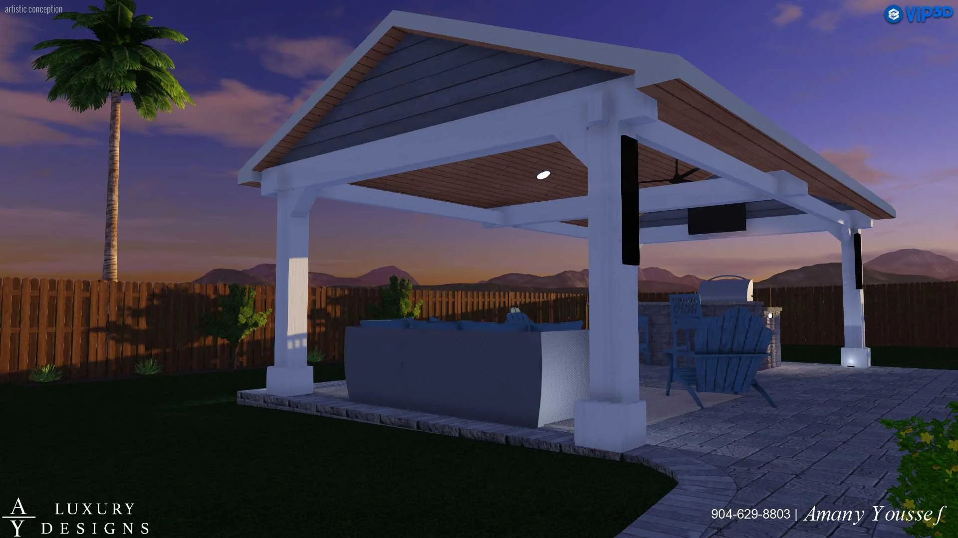 This custom cedar A-frame gazebo was designed to seamlessly mirror the home’s architecture while transforming the backyard into a fully integrated outdoor living and entertainment space—complete with a built-in kitchen, hidden TV, synchronized audio, and color-controlled lighting.